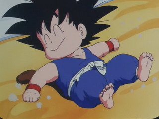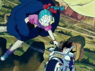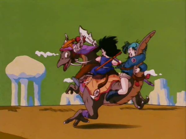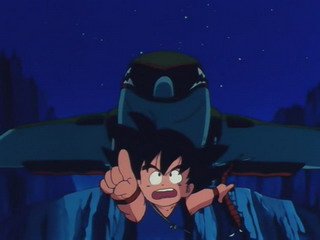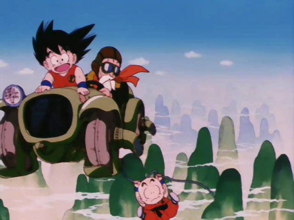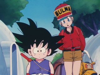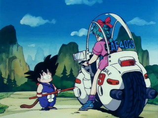强壮的悟空被摩托撞了居然没事一般,看见自己从来没见过的摩托,悟空把其当作的怪物,冲了上去,惊慌的布玛用枪向悟空扫射了过去,但悟空并没有受伤。。。。。。悟空发现了好几个“爷爷”(龙珠),于是布玛就把悟空当作自己的保镖,说是去冒险找更多的“爷爷”,龙珠的故事也就正式的拉开了帷幕。天真无邪的悟空期间遇到了乌龙,乐平等伙伴,有一点比较恶搞,因为悟空从没见过女孩子,