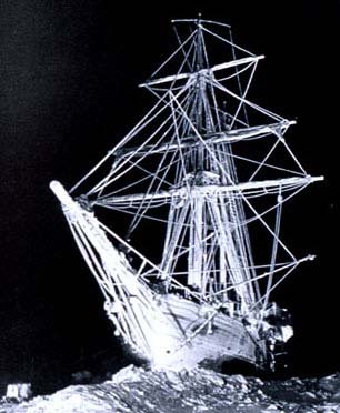 1915年2月22日,「坚忍号」(the Endurance)来到南纬77度,距离南极陆地还有144公里——然后就被困在浮冰中,随之漂流。最后,船身逐渐承受不住流冰群的挤压。