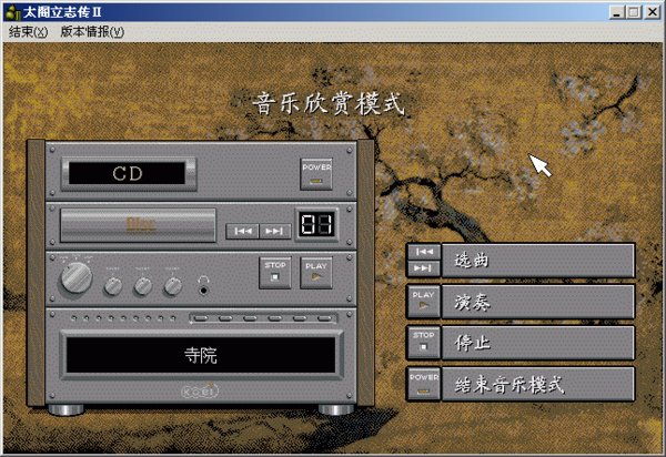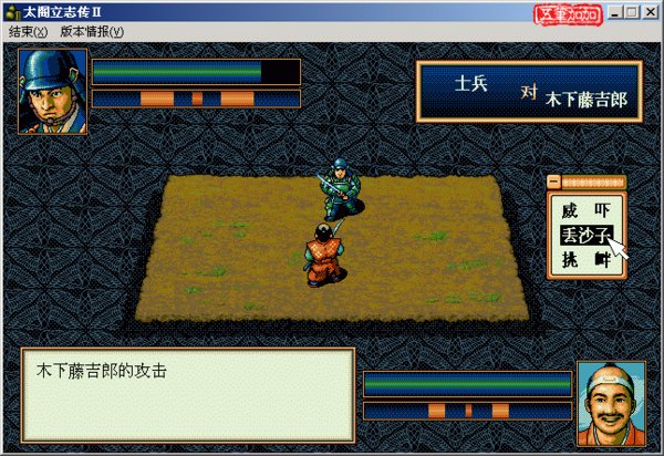 英文名:Taikou2 中文名:太阁立志传2 开发制作:光荣(KOEI) 代理发行:第三波 游戏类型:策略 上市时间:1995年 配置要求: Windows 98/2000/ME/XP CPU i486-66(推荐Pentium-75以上) 内存8MB以上(推荐16MB以上) 10MB以上硬盘空间 支持640X480分辨率256色显示的显卡 简体中文光盘版,含CD音轨,98/2000/XP系统完美运行,不过请确保你的虚拟光驱是第一光驱。 《太阁立志传》二代在一代的基础上对游戏的各个特色进行了完善,使得这款游戏成为一个真正的经典之作。 首先在画面和音乐上,二代比起一代有着明显的进步,尤其在音乐上,二代的音乐十分动听。除此之外,游戏的世界和舞台更加庞大。由于一代的地图仅限于半个日本,使得游戏的进程略显快了些,而二代的地图比一代几乎大一倍,包括200座城池和49个村落,玩家可以攻略几乎整个日本。 二代的故事情节仍然和一代相同,不过与一代相比增加了很多新的人物,同时人物角色参数的设置更加详细而且合理,人物的各项能力不再是自动提升,而是要通过到相应的场所学习才可提升相应的能力,玩家在成为部将后即可招收部下,并可带部下一同修行,这些都增加了游戏的耐玩性。 二代的自由度比起一代有了更大的提高:玩家在游戏进行过程中甚至可以脱离织田家为其他大名效力;当玩家用秀吉通关一次后,还可以扮演柴田胜家、明智光秀以及新武将,通过不同的角度看待相同的历史事件;游戏中共有13个历史事件,包括了墨俣筑城、金崎殿后、安土筑城、本能寺之变以及长篠合战等影响秀吉命运的全部历史事件,每个事件的触发都需要一定的条件。