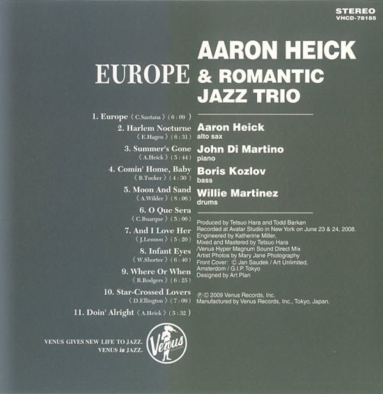: 01. Europe(C.Santana) 02. Harlem Nocturne(E.Hagen) 03. Summer'sGone(A.Heick) 04. Comin' Home, Baby(B.Tucker) 05. Moon And Sand(A.Wilder) 06. O Que Sera(C.Buarque) 07. And I Love Her(J.Lennon) 08. Infant Eyes(W.Shorter) 09. Where Or When(R.Rodgers) 10. Star-Crossed Lovers(D.Ellington) 11. Doin' Alright(A.Heick)