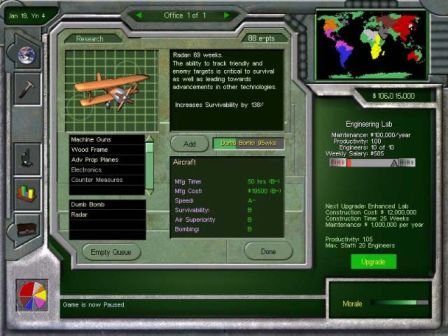 作为一款策略游戏,《商业大亨》中也有很多的建筑种类,它可以提供额外的利润和发展机会。比如工厂(最开始你的生产活动是在一个修理库里)可以实现大规模生产以降低单位产品生产资料损耗,并提高生产力;销售室可以扩大地区性销售范围,卖出更多产品;研究室用于研究生产工艺,提高生产率;市场部用于进行市场活动;仓库则可以降低员工花费;从智能建筑里你可以了解敌我双方的各种情况对照图表,了解双方的长处、机会、弱点和威胁,为下一步行动提供参考。