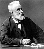 儒勒·凡尔纳(Jules Verne,1828.2.8.-1905)1828年生于法国西部海港南特,他在构成市区一部分的劳阿尔河上的菲伊德岛 生活学习到中学毕业。父亲是位颇为成功的律师,一心希望子承父业。但是凡尔纳自幼热爱海洋,向往远航探险。11岁时,他曾志愿上船当见习生,远航印度,结果被家人发现接回了家。为此凡尔纳挨了一顿狠揍,并躺在床上流着泪保证:“以后保证只躺在床上在幻想中旅行。”也许正是由于这一童年的经历,客观上促使凡尔纳一生驰骋于幻想之中,创作出如此众多的著名科幻作品。   18岁时,他遵父嘱,去巴黎攻读法律,可是他对法律毫无兴趣,却爱上了文学和戏剧。一次,凡尔纳自一场晚会早退,下楼时他忽然童心大发,沿楼梯扶手悠然滑下,不想正撞在一位胖绅士身上。凡尔纳非常尴尬,道歉之后随口询问对方吃饭没有,对方回答说刚吃过南特炒鸡蛋。凡尔纳听罢摇头,声称巴黎根本没有正宗的南特炒鸡蛋,因为他即南特人而且拿手此菜。胖绅士闻言大喜,诚邀凡尔纳登门献艺。二人友谊从此开始,并一度合写戏剧,为凡尔纳走上创作之路创造了有利条件。这位胖绅士的名字是??大仲马。毕业后,他更是一门心思投入诗歌和戏剧的创作,为此不仅受到父亲的严厉训斥,并失去了父亲的经济资助。他不得不在贫困中奋斗,以读书为乐。他十分欣赏雨果、巴尔扎克、大仲马和英国的莎士比亚。在巴黎,他创作了20个剧本(未出版)和一些充满浪漫激情的诗歌。   后来,凡尔纳与大仲马合作创作了剧本《折断的麦秆》并得以上演,这标志着凡尔纳在文学界取得了初步的成功。在继续创作的过程中,凡尔纳感到文学创作似乎缺乏出路,而且他发现当时文坛上的人都在找出路,都在试图把其他领域的知识融进戏剧。比如大仲马是将历史学融进文学,而巴尔扎克则把社会伦理学融进文学……这时凡尔纳发现,只剩下地理学还没有被开发。于是凡尔纳利用一年的时间进行试验,创作出《冰川上面过冬》等作品,但未发表。     1856年凡尔纳乘火车来到北部城市亚眠,遇到一名带着两个孩子的漂亮寡妇,一见终情并求婚,继而结婚。接着凡尔纳搬家过去,从此开始认真创作。其时29岁。   凡尔纳创作出《气球上的五星期》后,16家出版社无人理睬,愤然投入火中,被妻子抢救出来,送入第17家出版社后被出版。赏识此书的编辑叫赫茨尔,从此凡尔纳遇到了知音,与之结下终身友谊。黑格尔与凡尔纳签订合同,一年为其出版两本科幻小说。   《气球上的五星期》出版之后,凡尔纳的创作进入了一个多方面的探索时期,他试验多种写法,朝多种方向进行探索,一发不可收拾。每年出版两本,总标题为《奇异的旅行》,包括《地心游记》《从地球到月球》《环绕月球》《海底两万里》《神秘岛》等等,囊括了陆地、海洋和天空……此后探索停止,开始成熟,进入平稳的发展时期,创作出《80天环绕地球》《太阳系历险记》(中译《大木筏》)《两年假期》等优秀作品。随着声望的增高,凡尔纳的财富也在迅速增长。     凡尔纳的晚年不是十分幸福,创作减少并进入衰弱期,其《卡尔巴阡的古堡》有一定的自传性,表现了生活中隐秘的侧面。   1905年3月17日凡尔纳出现偏瘫,24日失去知觉,25日晨8:00去世。   1905年3月28日大出殡,全世界纷纷电唁,悼念这位伟大的科幻作家。   凡尔纳的故事生动幽默,妙语横生,又能激发人们尤其是青少年热爱科学、向往探险的热情,所以一百多年来,一直受到世界各地读者的欢迎。据联合国教科文组织的资料表明,凡尔纳是世界上被翻译的作品最多的十大名家之一。   凡尔纳是一个非常优秀的通俗小说作家,有一种能够把自己的幻觉变得能够触摸的本领,其感觉是全方位的,从平淡的文学中传达出某种人类的热情。但凡尔纳的小说中人物除了少数几个外都是一模一样的,他似乎塑造不出更重要的人物,人物都是脸谱化的简单的好人坏人,没有什么心理活动;从其作品人物性别单一化上还可看出他对女人的偏见,隐隐流露出深受其苦的心态。此外凡尔纳的作品中充满了明显的社会倾向,是一个爱国者(法国人最好)、民族解放主义者(支持被压迫民族斗争),在某种程度上是一个无政府主义者(从某些作品中表现出无秩序者),最后还是一个银河帝国主义者(有缔造宇宙帝国的欲望)。   凡尔纳的作品里充满了知识,但他本人却是一名宇宙神秘主义者,对世界有一种神秘的崇拜。在他的小说中,有时候思考问题不够深刻,主题也常常重复。   但总的来说,凡尔纳的尝试仍然是伟大的。他写的虽然都是平凡小事,但读后仍使我们激动不已。正如1884年教皇在接见凡尔纳时曾说:“我并不是不知道您的作品的科学价值,但我最珍重的却是它们的纯洁、道德价值和精神力量。”