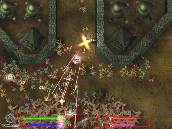 Adrenaline (超能力):这个是最重要的一项技能,每升级一次这个技能角色将得到新的属性。比如:等级1,超能力增加角色的速度;等级2,可以恢复角色的生命值(可以超过生命值上限);等级3,装弹速度加快;等级4,速度更快;等级5,你可以得到50点额外生命值。 这个技能必须由完架来启动,当使用了之后必须等到它恢复以后才能二次使用。 其它所有技能都将自动生效,并且一直有效。