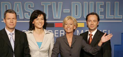 德国总理施罗德在2005年9月4日20点45分与反对党领导人默克尔举行大选前电视辩论。双方围绕经济改革政策进行了面对面的交锋。