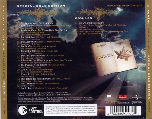 专辑英文名: Das Testament(Special Gold Edition 2002)