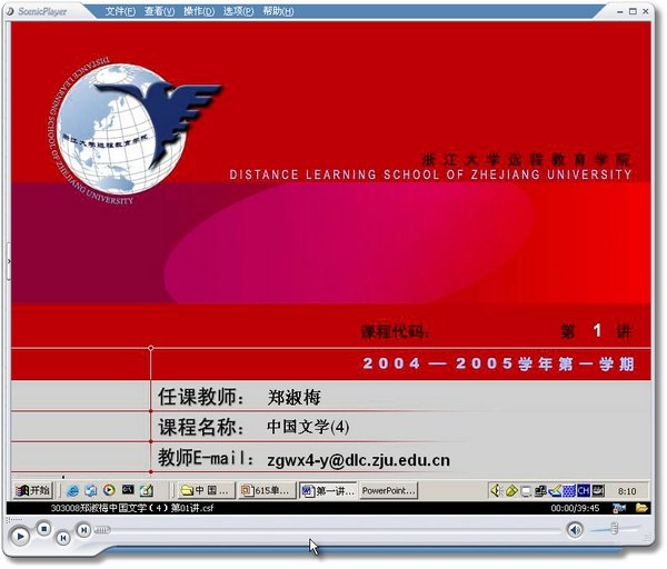 中文名: 2005003中国文学 四 浙江大学 共18讲郑淑梅主讲