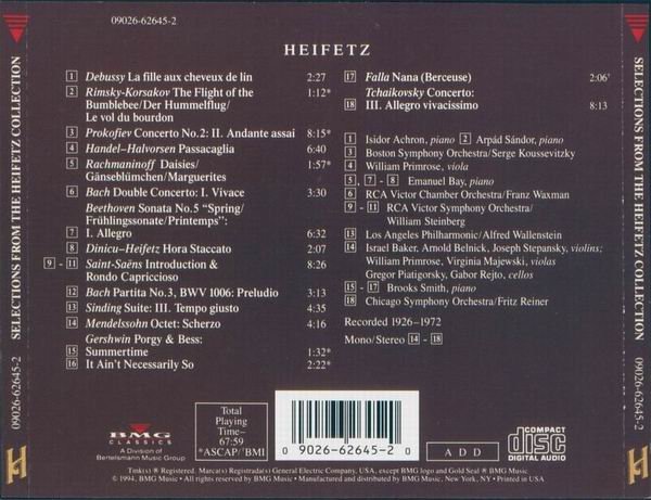 此专辑是海飞兹46册大全集之精选,经典录音从1926年-1957年,跨越海飞兹黄金30年,收录了他唱片几乎所有重要小提琴曲目,包括了十八首百听不厌的小提琴音乐小品,既有经典作品,亦有由他自己改编的作品,都享有崇高评价。