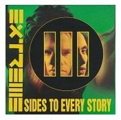 1992年,旷世之作《III Sides Of Every Story》推出了,这是一张长达80余分钟的概念专辑(注,该专辑磁带版长81分钟,CD版长76分钟),说起概念专辑,以前象 Pink Floyd , Yes, ELP 这些经典前卫艺术摇滚乐队的作品已给人们留下了很深刻的印象,而象 Extreme 这样一支年轻的金属乐队创作的这张专辑,水准甚至超过了那些老前辈。新作推出后评论界好评如潮,专辑中除保持了上张专辑中 Extreme 特有的演奏演唱风格外,在音乐铺排和作品内涵的深度上均达到了一个全新的高度。专辑被分为 “Yours”, “Mine”, “The Truth” 三个部分,反映了乐队对这个世界的愤怒和担忧,从第一首气势汹汹的 “Warhead” 到结尾交响乐伴奏的到结尾交响乐伴奏的 “Who Cares”,你甚至不能说这是一张重金属专辑。值得一提的专辑中 “The Truth” 部分,共三首歌曲,却长达二十余分钟,而且一气呵成、绝无冷场,很显然这是一张需要去慢慢体会的专辑,只是 “More Than Words” 的歌迷很显然是无法再满足了。令人遗憾的是,这张精心制作的专辑并未创作市场奇迹,歌迷们对这张需要很长时间去消化的专辑缺乏应有的耐心,《III Sides Of Every Story》并未延续乐队上张专辑的销售佳绩。