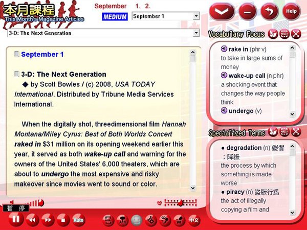.配合学习内容的影片播放,让你轻鬆看懂、听懂英文。