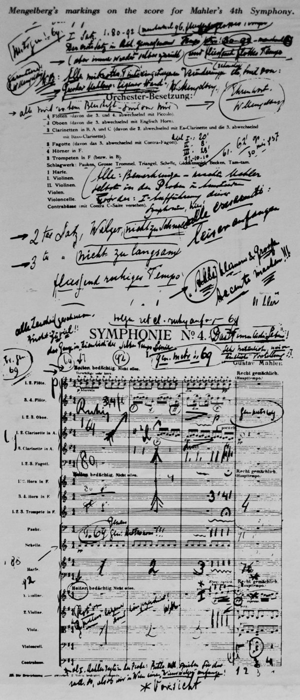 这个现场版本在开始的第三和第四小节处极有争议,对于那第三四小节马勒在排练时曾说,请以渐慢演奏,就像我们演奏维也纳风格的圆舞曲一样。几乎所有指挥家的录音在这里都慢了一下,可谁也没有像门盖尔贝格的那种奏法,马勒手批的总谱除了在第三小节前两拍上有铅笔加上的两个渐慢记号外,在第四拍还加了个延长符号,更是在门盖尔贝格那有些怪异的停顿处有两个叉叉,但门盖尔贝格在那慢得几乎要停下来的地方的演奏速度远比手稿上标出的每拍69 和每拍76-80 两种不同速度中的任何一种都要慢。而门盖尔贝格及他的阿姆斯特丹大会堂乐团和马勒又是有着那么深的亲密关系,到底哪种演绎更接近马勒本人的意思呢?马勒在1904年10月排练他的第四交响曲并接连两次演出后写给艾玛的信中说,“今天我排练了四号,乐团的声音非常干净,因此我也着迷了”。两年后他又写着,“乐团事前的排练非常出色,演出水准能与维也纳相提并论”。