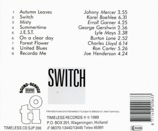 Reissue with the latest remastering and the original cover artwork. Comes with a description written in Japanese. You may not know European piano player Karel Boehlee, but you'll definitely sit up and take notice after hearing this sweet little set – because he's a hell of a pianist, with a wonderfully lyrical touch! The album's got a masterful sound right from the start – a confident approach to the keys that often has Boehlee leaving just the right amount of space between notes, as he makes his way through the set with very well-matched accompaniment from bassist Frans Bouwmeester and Hans Eykenaar – two more players we don't know at all, but who round out Karel's playing wonderfully. Titles include the great title original "Switch" – plus variations on "Autumn Leaves", "Summertime", "Jest", "On A Clear Day", "Forest Flower", "United Blues", and "Recorda Me".