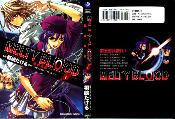 【作品情报】 册 数:2本 质 量:良 状 态:连载中 类 型:日本漫画 【作者】:桐嶋たける 【内容介绍】 M E L T Y B L O O D 来吧,来展开一场仅限于今夜的祭典------ MELTY BLOOD,于2002年底由TYPE MOON与渡边制作所合作之下 所产生的格斗+电子小说的同人游戏. 很多会想接触月姬的人士都是因为这片MELTY BLOOD的原因 因此这片对推广月姬世界的功劳可是非常大的. 故事叙述在翻弄远野家的吸血鬼事件过后一年 志贵住的镇上又开始在流传着吸血鬼出没的传闻 这是一年前的事件所遗留下来的?或是新的敌人再度袭来? 八月的一个晚上志贵遇到一位向他袭击而来的外国女子. 战斗后知道对方是为了要追捕一位死徒而来到这国家 志贵在了解事情后答应协助她打倒那死徒.随后就像是RPG一样. 为了打倒大魔王勇者与从者不断的战斗,而且战斗对像都是熟人... 此格斗游戏的故事变化由你战斗的胜败来定. 胜是一种故事.败也是一种故事. 看最后你会了解到死徒的悲哀.或者是远野家的悲哀 角色介绍 紫菀(SION ELTNAM ATLASIA) MELTY BLOOD整个故事的带动者 三大魔术师学院其中之一,亚特拉斯,的次期院长候补 但在三年前于意大利山村与教会一齐围剿瓦拉齐亚之夜之后 就失去了踪影.也因此成为被学院与教会两方通缉的对像 为了打倒自己所追的死徒,瓦拉齐亚之夜,而与志贵接触 -------------------------------------------------------------------------------- 瓦拉齐亚之夜(WALCHIA) AMELTY BLOOD整个故事的起源者 原为非常优秀的亚特拉斯炼金术师, 因无法计算出回避人类破灭的方法而发狂. 和血与契约的支配者,爱尔特鲁琪,立下契约后化身成为一种现象 他的能力在此有详述 -------------------------------------------------------------------------------- 机动战士翡翠(M-HISUI) 琥珀动用远野家地下资金极秘开发出来的机械人 电子脑套用了翡翠的思考模式,因此其忠诚度不需怀疑. 对于接近志贵的闲杂人等一律排除. 其武器多半是PSO*里头的,显示制作者PSO中毒度很深 (*)PSO.PHANTASY STAR ON LINE.SEGA制作的ON LINE GAME -------------------------------------------------------------------------------- 有间 都古(ARIMA MIYAKO) 志贵的养父母.有间夫妇的亲生女儿 不知为何在MB中是化身为八极拳法家 都古本身对志贵有好感.但因为不会表达 眼睛又只会死看着志贵想表示什么 造成志贵以为都古讨厌他所以瞪他.在莲这样的强敌出现之下 只保有妹属性的她恋情何时才会开花结果呢? -------------------------------------------------------------------------------- 紫菀觉醒模式(SION HYPER MODE) 因受瓦拉齐亚实体化的影响使体内的吸血鬼因子开始活性化 由本来什么都不敢表示的紫苑变身成被原始的欲望所支配的紫苑 Re.ACT的最后解决掉志贵,吸收瓦拉齐亚而成为新的TATARI -------------------------------------------------------------------------------- ARCUEID恶女模式(WARCUEID) 恶梦四天王之一. 志贵心中对爱尔奎特的恐惧所投影出来的形象.......被这样的人所宠幸到底是福是祸呢? 在Re.ACT中确认为朱月的代表体 -------------------------------------------------------------------------------- 远野秋叶(TOONO AKIHA) 恶梦四天王之一. 志贵心中对自己妹妹半夜跑出去乱吸零食的恐惧所投影出来的形象. 但是在打本人时比恶梦还要难缠,打输就变身. 看来志贵还是个爱作梦的少年.梦中的妹妹是那么的温柔... -------------------------------------------------------------------------------- 红赤朱(KURENAISEKISHU) 超赛亚人头发变金.女王不高兴时头发变红. 当女王不高兴时SM模式发动.靠近都会感觉到痛,体力不断下降 Re.ACT中则是为了教训乱跑的哥哥自己亲自出动 跟青子为不共戴天之敌(因为造型重迭) -------------------------------------------------------------------------------- 雷诺(NRVNQSR CHAOS) 恶梦四天王之一. 志贵第一次面对死徒时的恐惧所投影出来的形象 雷诺即使是这种样子也不改爱说教的习性.被消灭之前把自己 现在这样一个存在跟志贵解释了一顿 -------------------------------------------------------------------------------- 七夜志贵(NANAYA SHIKI) 恶梦四天王之一. 志贵本身对自己的恐惧所投影出来的形象 老实说两者的差别并不大.不过这一位的台词酷些 在Re.ACT中充分的享受那只限于一夜的祭典 对都古与秋叶展现了鬼畜哥哥的态度 -------------------------------------------------------------------------------- 翡翠(HISUI) 为了所爱的主人.不属战斗单位的翡翠也投身于无情的战场之上 为了取回往日的平和.翡翠只有战了. 即使那平和的意义可能就是把志贵给打到不能动躺在床上. -------------------------------------------------------------------------------- 琥珀(KOHAKU) 动用远野家地下资金开发机械人翡翠并在各都市安置. 开发神秘药物使秋叶也成为秘密兵器. 扫把中还有逆刃刀.别人可以不用管.但是琥珀这样一位角色不能不注意 -------------------------------------------------------------------------------- 希耶尔(CIEL) 不能成为恶梦四天王,可见她对志贵施与的暴力还不够...... 在此作戏份并不多.不过用第七升天杀与第七圣典时很帅. -------------------------------------------------------------------------------- 远野志贵(TOONO SHIKI) 用一把小刀战尽自己的公主,学姐,妹妹,随从,外国来的吸血鬼 神秘现像,机械人,最终兵器,八极拳等等... 我们的志贵真的是很累的一位角色 -------------------------------------------------------------------------------- 巨人秋叶(GAINT AKI