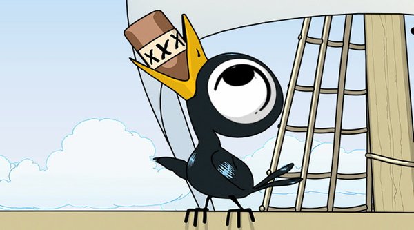 The Drinky Crow Show是美国漫画作家Tony Millionaire 跨足动画的首部作品。 系列先於2007年於Cartoon Network旗下的Adult Swim 单元试播-Adult Swim是一个专门播放成人卡通的深夜时段-所谓的成人卡通可不是什么A漫。 而是一些内容血腥暴力、低俗扭曲、辛辣下流、严肃正经,总之不会"永远普级"。 如辛普森家庭,南方公园就是固中代表。如辛普森家庭,南方公园就是固中代表。 靠着Tony Millionaire常年在几家重要报社的讽刺漫画专栏"Maakies"累积的广泛人气,The Drinky Crow Show在2007试播后立刻声名大噪,成为Adult Swim频道最受人注目的新节目,2008的11月终於成为常态播映。 而一同合作的导演Eric Kaplan 则是另一部大名鼎鼎的动画影集Futurama的制作人。 主角是隻可爱到会让少女尖叫的大眼乌鸦,但却有着严重的酗酒问题,以及动不动就想自杀的毛病。 整部作品以3D模拟2D画面,视觉时空介於15世纪大航海时代与18世纪工业革命之间,如在"Pilot"里头就挪用了16世纪的地图"Carta Marina" 里的双孔鲸 ,或是"Beer Goggles"里头莫名古典、奇妙科幻的蒸气眼镜。 而整个来说The Drinky Crow Show其实是一部肥皂剧,Crow不得志的人生围绕着他的感情生活开展,不时喋喋不休的懺情口白,举枪嘮叨着无望未来,低级又廉价的爱情故事,和着视血浆为糖水,尸块如巧克力的暴力逗趣,一起灌入无底洞的酒囊。 Drinky Crow Show, from the Maakies comic strip, is imaginative, but lacks purpose, which is perhaps the purpose. Poor Drinky is trapped in an existential crisis, while his friend Uncle Gabby (a monkey) tries to get him to see the bright side of life. Uncle Gabby's got his work cut out for him in Drinky Crow Show, because things never work out and all the characters are searching for something they'll never obtain. As the characters wander, so does my attention.