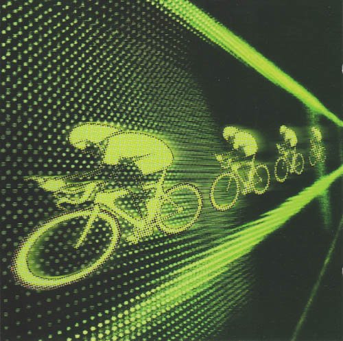 发电站还是要让器物说话,沉寂了17年之后,发布了这张环法单车赛的配乐专辑,开场Prologue虚渺空旷的感觉似乎就是带你来到单车赛的起点处,发电站真不是一般的聪敏智慧!接下来三个连续部分的环法主题由慢及快,有疏松到整齐,夹杂着自行车轮毂和空气摩擦,飞盘和踩踏往复的摩擦声响,时而峰回路转,时而崎岖起伏。活生生的自行车比赛就从听觉里淋漓尽致的展现。维他命那段可是发电站03年后现场演奏的必奏曲目,配合了背景银幕中维他命胶囊活动的画面。空气动力学Aero Dynamik是专辑中最驰放的一段,紧张的节奏似乎表达了比赛先进分子正在做拉开差距的加速,谁避免空气阻力谁就能节省体力赢得的优先的机会。接下来的钛合金也是有点这个意思,高科技的运用对提高现代运动的成绩功不可没。电子计数器Elektro Kardiogramm中符合运动人体体能状态的表达可谓是生动无比,吐词中好像在叫着人的名字(。。。马克西姆),估计这个电子计数器不但能测出时速和给出里程显示,还能测出脉搏和呼吸频率。La Forme我不知道是什么意思,感觉像是在体力消耗疲劳状态下随着赛程的尾声沿途领略风光来着,呵呵(我猜的)。最后一曲落幕曲回顾整个赛程,选手喘着粗气接连抵达终点,一场体育运动和音乐的完美结合成果。
