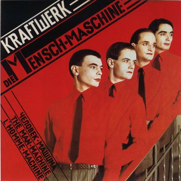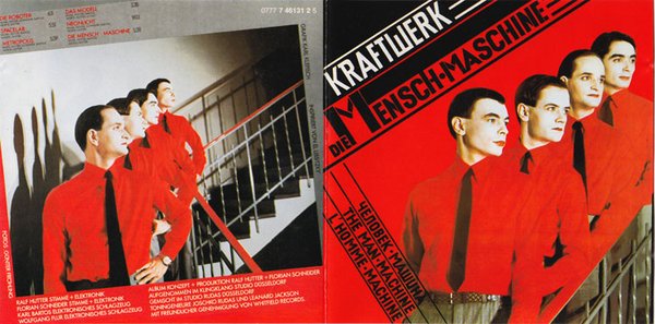 七十年代后半期,Kraftwerk几乎每年都在出新专辑:让汽车说话,再让火车说话,78年又实现了让自行车说话的概念。1978年发行了这张当时看起来听起来都很光怪的主题专辑《Die Mensch-Maschine》。Die Mensch-Maschine是The Man Machine,也就是人型机器智能化机器的意思。为数不多的曲目,歌词大多寥寥几句反复吐词。也收录了几首跟机器没有关系的曲目,听起来很有意思,Das Modell和Neonlicht。看过Kraftwerk音乐会DVD的朋友都知道Das Modell就是描述服装模特走秀的场景,曲中Kraftwerk含蓄的对“模特”进行趣味调侃,这首曲子后来被很多乐队翻唱改编成轻音乐,其中有英国的OMD(前几日发过他们的Sugar Tax专辑其中就有)还有90年左右香港所谓的音乐鬼才周启生进行过改编翻唱。Neonlicht则是对夜晚霓虹灯的表达,在当时,这些虽然已不是什么新鲜的玩意,但是在世界面貌转型前夕对于一群有想法的青年人来说,又是很有意味的迷离感受。