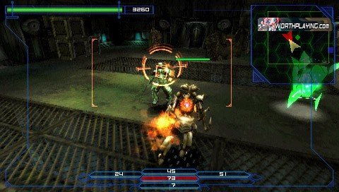 本作是第三人称追尾视角进行游戏的,游戏方式与FPS类似,玩家可以通过小摇杆来控制准心。本作的画面水准与前作类似,达到了PSP上较高的水平,由于本作的游戏舞台并不在局限于炼狱塔内,所以在战斗场景方面向比前作不在那么压抑,更为爽快。