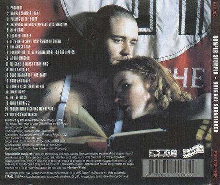 : 1.Prologue 2.Romper Stomper Theme 3.Pulling on the boots 4.Skinheads go shopping - Gabe sees swastika 5.Mein Kampf 6.Fuehrer Fuehrer 7.Let's break some fingers - Brawl crawl 8.The smack song 9.Tonguey for the skins - Nightmare for the hippies 10.At the mansion 11.We came to wreck everything 12.Wild animals 1 13.Bubs dead - Gabe finds Davey 14.Gabe and Davey 15.Fourth Reich Fighting Men 16.Night Drive 17.On the beach 18.Wild animals 2 19.Fourth Reich Fighting Men Reprise 20.The Dead Nazi March