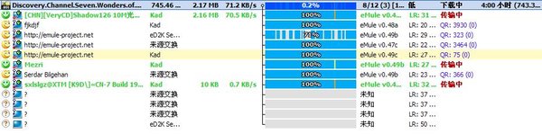 本人常在服务器 1.www.UseNeXT.to 2.no1.eserver.emule.org.cn 一般情况下晚上19点~第二天7点 在线,学校教学楼的机子,10MB 光纤,LowID 全速上传中~~~O(∩_∩)O