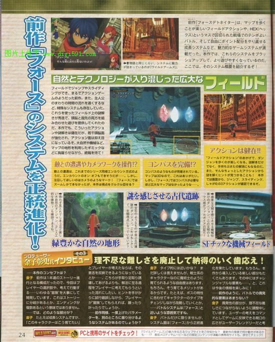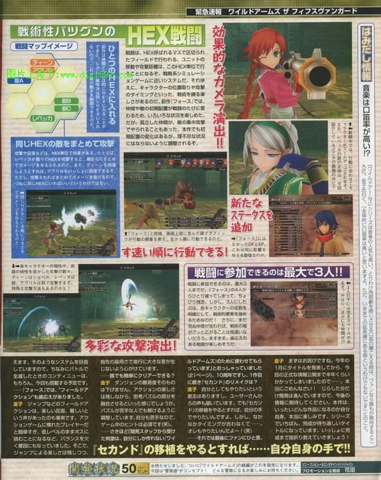 SCEI日前举办一场记者会,宣布他们知名RPG最新作品《荒野兵器V:先锋》(Wild Arms the Vth Vanguard)将在今年12月14日登陆PS2,也被视为今年底PS2的主打RPG游戏,就目前公布的资料看来,《荒野兵器V》的确有非常突出的表现。   《荒野兵器》是SCEI在196年针对PS主机推出的RPG作品,而在当时也因为少数具有美国西部风格的世界观设定、华丽的画面表现与悦耳动听的音乐、丰富的游戏内涵而受到好评。而这次PS2版《荒野兵器V》则是全系列第六款游戏,也是纪念《荒野兵器》推出10周年纪念作。加上SCEI每年底都会有一款主打RPG推出(2004是《勇者斗恶龙8》、2005年是《侠盗银河》),而今年SCEI的年末压轴RPG游戏则是《荒野兵器V》。   而《荒野兵器V》能被选作年底压轴RPG,自然有其突出的地方,而根据目前公布的游戏资料,《荒野兵器V》的游戏内容也会非常庞大。整个游戏设定在一个独特的异世界“法尔盖亚”,而游戏中存在著人类与古代兵器“哥雷姆”并存的世界,而主角是个希望成为哥雷姆猎人的年轻冒险家狄恩,与青梅竹马的女朋友蕾贝卡一直为了寻找哥雷姆而冒险,一日他们发现了神秘的金发少女雅薇丽昏倒在地而救了她,而这个失去记忆的神秘少女似乎掌握了哥雷姆的重大秘密,为了帮助她回复记忆,主角一行人也展开了全新冒险。   而这次《荒野兵器V》也特别强化了动作要素,比如说主角所持有的可变型武器“ARM”就提供了丰富的可能。在平常状态时ARM会是以手枪方式表现,可以发射子弹或勾绳来开启迷宫机关,甚至当做缆绳让玩家摆荡跳过陷阱,而在战斗时ARM则是多功能的火炮武器,能以各种不同属性的子弹攻击敌人。当然另外两位女主角也会有这样类似的特异武器存在,玩家必须妥善发挥三位主角不同的能力属性才能过关斩将。   按照SCEI的规划,《荒野兵器V》既然副标题为先锋,又是纪念《荒野兵器》系列10周年的作品,希望能开创新格局的企图心很明显,所以游戏内容也加入了更多要素,除了RPG的壮大剧情之外,还有动作、解谜、射击等要素融入其中,提供更大的变化性。对了,SCEI还宣布了PSP也会有一款全新《荒野兵器XF》游戏开发中,不过打算在东京电玩展期间才会公布。