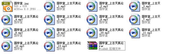 这个MP3音质版本共13集,是中国之声《国学堂》的监制和百度国学堂贴吧吧主特别提供,应中传和百度贴吧国学堂的国学爱好者刊发。