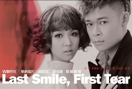 : 由《梁祝下世传奇》、《一期一会》W创作社制作,首次登上舞台演女主角的薛凯琪,联同香港舞台剧奖最佳男主角梁祖尧和汤骏业领衔主演2008年的音乐剧场《Last Smile, First Tear》,为观众呈现了一齣完美和感动人心的舞台剧。薛凯琪和梁祖尧饰在剧中演两个有缺陷的人,一个是不相信世界的人,而另一个则不相信爱情。这两个人相遇,互相劝勉,发展了一段暧昧的感情,二人在剧中擦出美丽的火花,精彩的演出大受观众的欢迎。 由导演司徒慧焯和黄智龙执导,2008年12月5日至11日于香港演艺学院歌剧院举行的《Last Smile, First Tear》音乐剧场的故事讲述男女主角在灰暗的生命中寻找出口。Fiona的好友离逝,她深感打击,活在自我世界之中。Joe在年幼时被母亲抛弃,因此他对于感情有所保留。Fiona开始不相信周围的人,Joe却不相信爱情。两人在偶然的机会下相遇,发展了奇妙的感情关系。 《Last Smile, First Tear》DVD收录了Fiona 与梁祖尧现场演绎的歌曲包括∶「天国的微笑」、「甜蜜蜜」、「不呼不吸几多秒」,以及跨媒体合唱的「给十年后的我」等等。