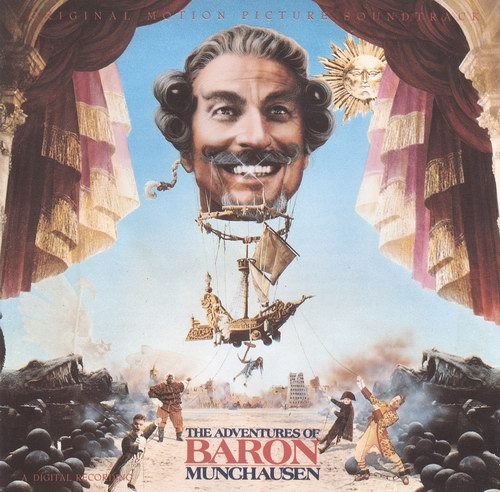 本片根据《吹牛大王历险记》改编,讲述13世纪德国孟豪森公爵的冒险故事,他是一个喜欢吹牛大人,有一次为了和苏丹王打赌,把苏丹王的所有宝藏都搬走了。从而引发了战争。孟豪森公爵只好找来一群具有特殊本领的仆人为他助战,那些人可以上天入地,从月球到地球,或者是大力士、千里眼和顺风耳,无奇不有。他们的目的就是为了拯救一个遭到围困的城市。电影原声是一部非常富有想象力的作品,由已故好莱坞著名电影配乐大师Michael Kamen制作。在长达近1小时的配乐中充满荒诞,混乱,奇幻以及快乐的元素。