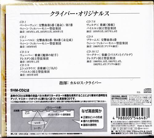 : CD 1. Beethoven Symphonies Nos.5, 7 (贝多芬 - 第五、七交响曲) Wiener Philharmoniker (维也纳爱乐乐团) CD 2. Brahms Symphony No.4 (勃拉姆斯 - 第四交响曲) Carlos Kreiber Vienna Philharmonic (SHM-CD) (维也纳爱乐乐团) CD 3. Schubert Sym.3, Sym.8 (舒伯特 - 第三和第八交响曲) CD 4-5. Strauss II Die Fledermaus (小斯特劳斯 - 蝙蝠) Bavarian State Opera Vardy Popp Prey(SHM-CD) (巴伐利亚国家歌剧院 - Vardy & Popp & Prey等演绎) CD 6-7. Verdi La Traviata (威尔第 - 茶花女) Bavarianstate Opera, Cotrubas, Domingo, Etc (巴伐利亚国家歌剧院, Cotrubas ,多明戈等) CD 8-10. Wagner Tristan Und Isolde (瓦格纳 - 崔斯坦与依索德) CD 11-12. Weber Der Freischutz (韦伯 - 自由射手/魔弹射手)