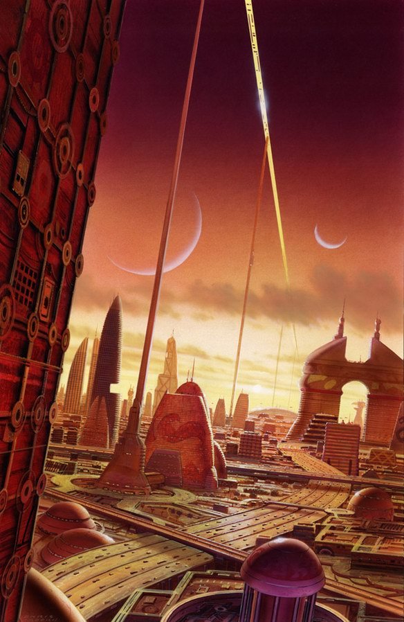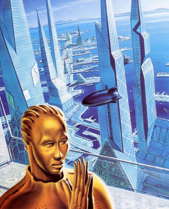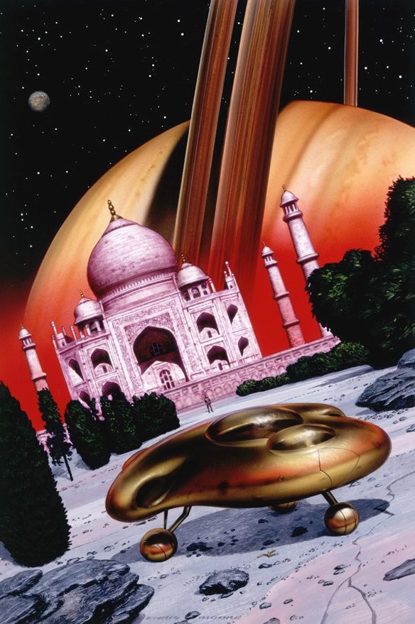 英国著名插画大师克里斯摩尔1947年出生于南约克郡的罗瑟拉姆,他最初在Mexborough文法学校接受教育,之后他又来到唐克斯特艺术学校学习绘画。从1966年到1969年,他参加梅德斯通艺术学院的平面设计课程,并随后于1969年和1972年之间接受了皇家艺术学院学习插图,克里斯在这里获得了插画创作的实际经验。在1972年他同Michael Morris,还有一个RCA注册了摩尔莫里斯公司,在整个七十年代他们的公司都在为杂志等出版物进行封面设计并一直持续到1980年,当时摩尔结婚,搬出了伦敦的中心。80年代末克里斯开始为科幻电影进行原创设计,在斯坦利库布里克和史蒂芬史匹堡的电影中都可以看到他的作品。