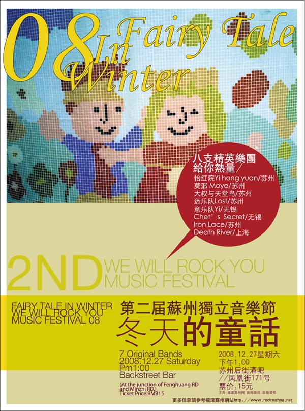 冬天的童话 摇滚苏州沉寂了好久,但是我们不想在爆发后沉默,更不想在爆发后消亡,所有为本地摇滚献出热忱、关注、理解和倾听的,寄希望现场音乐为大家带来激动和快乐的朋友们,你们久等了! 虽然现实环境也许在很长一段时期里会充斥各种艰难与无奈:(但是摇滚也从来没那么容易歇菜:)我们又回来了。 时间:2008年12月27日 周六下午一点 地点:后街酒吧 凤凰街民治路口 参演乐队:   怡红院(苏州|Indie Rock)   莫邪(苏州|Extrem Metal)   大叔与天堂鸟(苏州|Uncle Rock)   迷乐队(苏州|Emo)   意乐队(无锡|Indie Rock)   Chet's Sercret(无锡|Post-Rock)   Iron Lace(苏州|Hard Rock) Death River(上海|Gothic) 买鞋子哪个网站好?首选中国最大的正品鞋网商城(http://shoes.weixiaodian.com/)、 网上正品鞋城(http://u.weixiaodian.com/shoe/)。微店网页版请从http://121.weixiaodian.com登录:手把手教你如何免费申请开通微店、怎样经营微店及如何用微店赚钱。看笑话,上