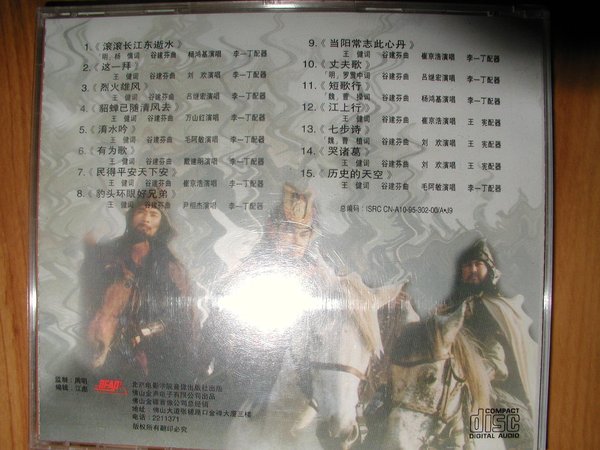 央视94版84集电视连续剧《三国演义》主题曲、插曲的原声大碟(北京电影学院音像出版社原装正版),很好听,这张碟市面上也比较难买到,希望三国迷们能喜欢。
