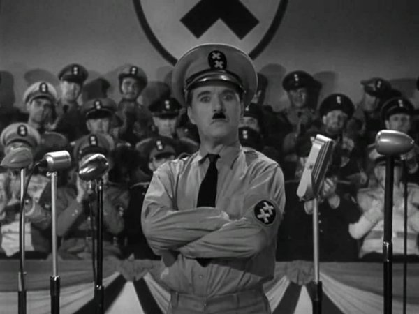 此片拍摄于希特勒气焰最为嚣张之时,片中对希特勒大加讽刺的情节显示了其道德勇气可嘉的一面。剧情描述犹太人理发师查理,因为独裁者兴杰尔对犹太人下达了逮捕令而东躲西藏。不料在奥国边境时,却被驻守在那里的德军误认为他就是兴杰尔,于是他趁机作了一场维护民主主义的大演说。该片是卓别林大师的杰作之一。