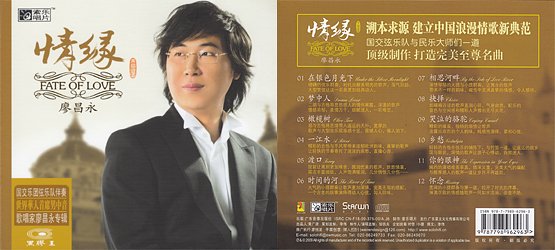 2007年,「华人第一男中音」廖昌永在首张发烧专辑《情释》中跨界演绎流行歌曲,打破了人们认为美声只适合演唱西洋歌曲的看法,并以考究的顶级录音、丰富的絃乐配器、质感厚润的人声、细节清晰的伴奏令专辑取得口碑与市场的双赢。在认真筹备两年之后,他的第二张跨界发烧力作《情缘》五一期间与乐迷「再续前缘」。   《情缘》仍由发烧乐界金牌制作人邹铁夫打造、国家交响乐团首席小提琴演奏家刘云志率「国交」倾力伴奏,延续了上一张《情释》的「铁三角」豪华幕后阵容,同时,黑胶唱片灌录、精致大气的编曲与配器,也让这张专辑的发烧指数提升。据介绍,这张专辑中廖昌永的歌声漫步於百年的华语歌坛,既有王洛宾充满民族风格的《在银色月光下》和《一江水》,也有上世纪四十年代「歌仙」陈歌辛的名作《梦中人》、「一代妖姬」白光首唱的《怀念》等,廖昌永重新演绎的这些「华语时代歌曲」没有了萎靡的味道却饱含著深情和力量,此外,当然也少不了上世纪七八十年代华语经典,如三毛的《橄欖树》、梁弘志的《抉择》、苏来的《时间的河》、席慕容的《渡口》等歌曲。值得一提的是,国画大师范曾作为好友欣然为廖昌永这张新专辑题名,令《情缘》更添文化品位。