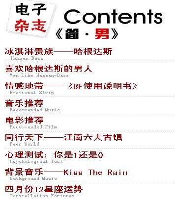 《简·男》电子杂志现有栏目简介