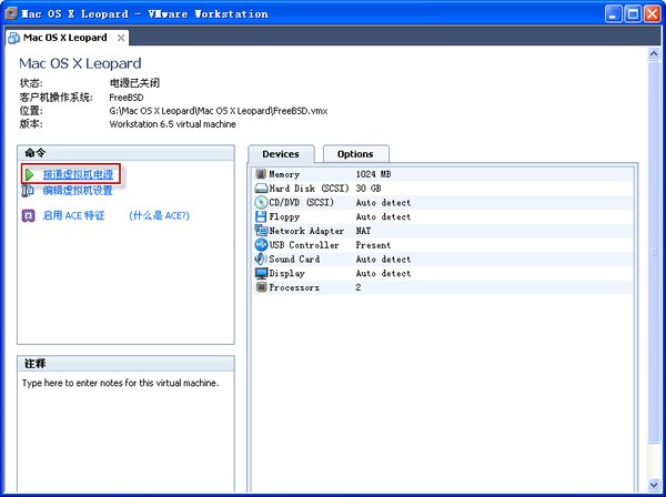 1.下载压缩后(在安装好虚拟机的环境下)点击“启动 Mac OS X Leopard”