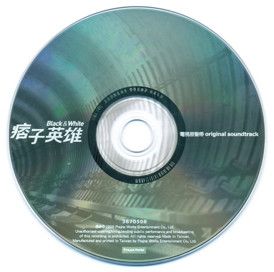 : 01. 无赖正义 演唱 / 赵又廷& COLOR BAND 02. 痞子与英雄 演唱 / 邹承恩 03. Hey BABY 演唱/痞客四 04. 放逐爱情 演唱 / 解伟苓 05. 黑暗序曲 06. 关於我们 演唱/痞客四 07. 来袭 08. 密谋者 09. 魔化 10. 两种英雄 11. 光明尽头 12. 迷雾 13. Perfect Stranger完美陌生人 演唱 邹承恩 痞客四 14. 礼物 演唱 / 罗美玲 15. 铁人 演唱 / COLOR BAND 16. 看不见的敌人 17. 真相 18. 最终的战役 19. 黑暗黎明 20. 有没有谁要离开 21. Black&White