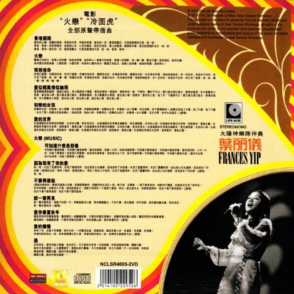 叶丽仪是唱《上海滩》主题曲的歌手,其实他发行的唱片很多很多。是香港首批粤语歌手。本张是她1973年发行的电影原声唱片的复刻版本。