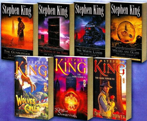 众所周知,《黑暗之塔》系列共有七卷,包括了《枪侠》(The Dark Tower:The Gunslinger Born,1982)、《三张牌》(The Dark Tower:The Drawing of the Three,1987)、《荒原》(The Dark Tower:The Waste Lands,1991)、《巫师与玻璃球》(The Dark Tower:Wizard & Glass,1997)、《卡拉之狼》(The Dark Tower:Wolves of The Calla,2003)、《苏珊娜之歌》(The Dark Tower:Song of Susannah,2004)和《黑暗之塔》(The Dark Tower,2005)。