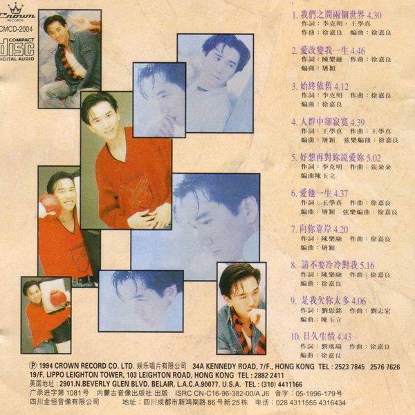 温兆伦第三张国语专辑【我们之间两个世界】,1994香港发行(1996年内地引进-四川金恒音像)主打歌《我们之间两个世界》最为动听。在香港歌坛, 温兆伦的名气绝对比不上张学友.刘德华等大牌歌星,在影视方面,他也肯定不是周润发.周星驰等超级腕儿的对手.照理说,在艺人多如牛毛的香港.台湾, 温兆伦算不上出色,但事实上对他情有独钟的歌迷影迷并不少.不知道为什么会有那么多人喜爱温兆伦,尤其是年轻的小姐们.大概是因为温兆伦洒脱的气质.自如的演技.温情的歌声,还有一眼看上去便给人以好感的外表吧.温兆伦在流行音乐中自成一派,声音温婉深情,每首歌也都各有风格,像一面镜子映射出温兆伦的内心世界