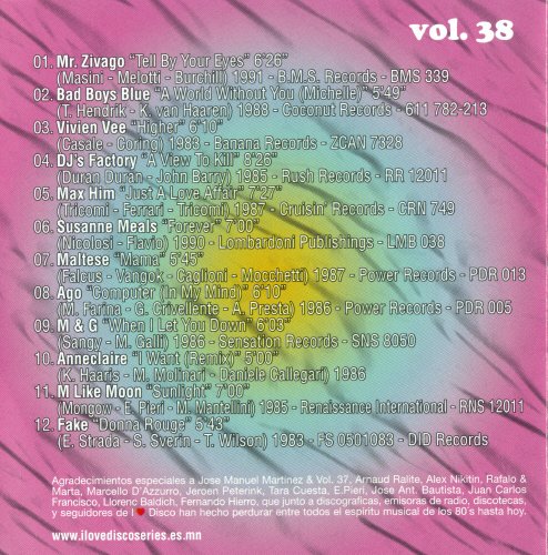 本集第38集. 曲目01. Tell By Your Eyes - Mr. Zivago 原名 Massimo Rastrelli. 代表作"Little Russian".在演唱会Various Artists -《Italo Disco 80 In Moscow 28 Clip The Best Of 》[DVDRip] 裏有出色表演. 曲目02. A World Without You (Michelle) - Bad Boys Blue 在VeryCD 裏有专辑及详细介绍. 特献上MP3供欧舞爱好者试听.