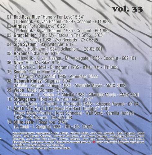 本辑第33集. 01. Hungry For Love - Bad Boys Blue, 03. (Find My) Tracks In The Snow - Grand Miller 在VeryCD裏均有专辑. 而此曲07. Delirio Mind ( Remix ) - Scotch 则在演唱会Various Artists -《Italo Disco 80 In Moscow 28 Clip The Best Of 》[DVDRip]裏也有非凡表现. 本辑名曲较多. 特献上MP3供欧舞爱好者试听.