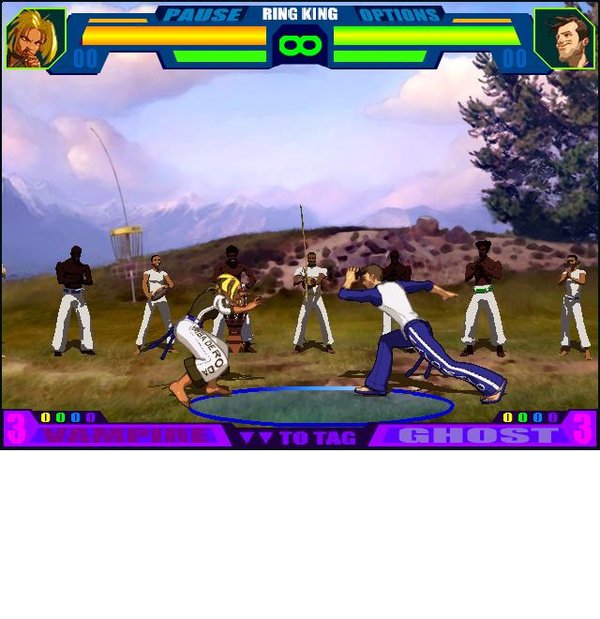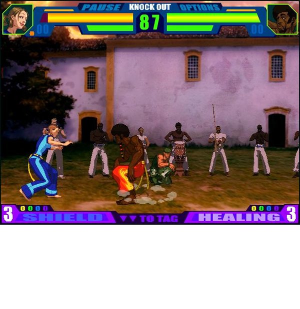 【游戏简介】 卡泼卫勒格斗是Spiritonin开发的一款独特的格斗游戏,它根据卡泼卫勒舞这种源于非洲把民间舞蹈和自卫动作结合在一起的武术,以其奇妙节奏,另类的武术风格,给你前所未有的独特感受,你可以在游戏中感受到这种风靡世界的健身运动的独特魅力。 画 面: 游戏采用Flash技术开发,不过这并没有影响游戏的画面,游戏的2D画面非常细腻,角色动作也十分流畅,别具风味的装扮和动作都给人奇妙的感觉。 声 音: 特别的打击音乐给游戏增加了浓郁的非常风情,游戏中招式的声效和角色的声音也很有特色,增加了格斗游戏的紧张与刺激。 上手度: 游戏的菜单和一般格斗类游戏的很类似,对于习惯格斗游戏的玩家应该很容易理解。游戏使用键盘操作,游戏中有详细的选择和操作说明,这里就不在赘述了,如果想要玩好这种格斗游戏是一定要充分了解角色的特有技巧的。 创 意: 虽然游戏表面上和一般格斗游戏的风格类似,不过你进入游戏后会发现游戏的感觉和你以前经历的格斗游戏完全不同,卡泼卫勒格斗这种来源于非洲的古老武术有着自己独特的特色和技巧,你以前积累的格斗经验可能在这个游戏里是完全行不通的。 可玩性:游戏模式丰富,角色也很多。开发的出色设计让游戏的角色平衡性很好,各种不同的招式组合都包含着巧妙的技巧,喜欢格斗游戏的玩家可需要仔细研究了。 【游戏截图】