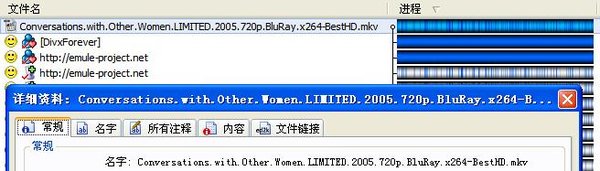 故事的男女主人公在一场婚宴上相遇,表面上看来,他们像是一对素不相识的陌生人,互相搭讪、调情,随后开了房。但随着谈话的深入,剧情到此这才真相大白,两人原来曾经相识,并且有过一段很深的爱恨纠缠,连数年后的这次相遇也是一场有意的安排…… 本片荣获2005年东京电影节评审团特别奖、最佳女演员奖。 代码 Conversations with Other Women (2005) http://www.imdb.com/title/tt0435623/ Rating: 7.0/10 (3,369 votes) 85m35s 1280x720 6867 kbps English AC3 448 kbps