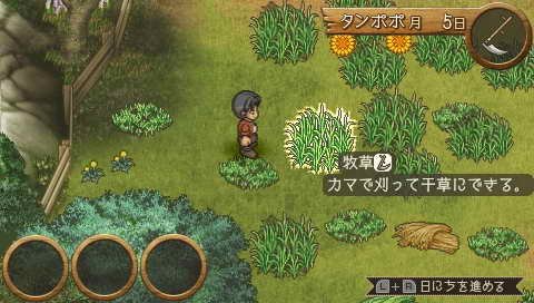 目前已确认,PSP版将新增加诸如:鸡、宠物狗、松鼠等新物种,还有一些需要玩家到郊野狩猎,在特定条件下才会出现的新动物;新增加自动仓库整理功能,主要是照顾新手玩家,可以通过简单的指令,即可整理好仓库的物品;新增加“牧场日记”功能,随着故事发展,一天中出现过的什么人,说的什么话,都会以日记的形式给予保存,方便玩家下次进行查阅。