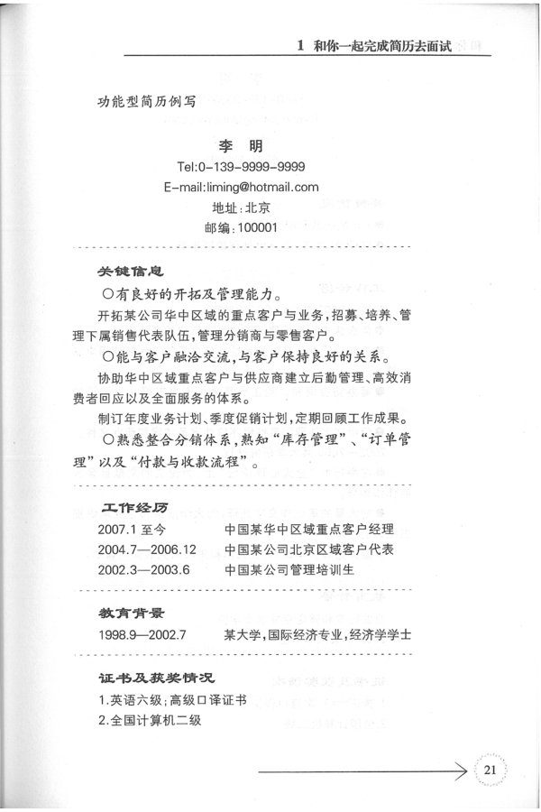 功能型简历例写