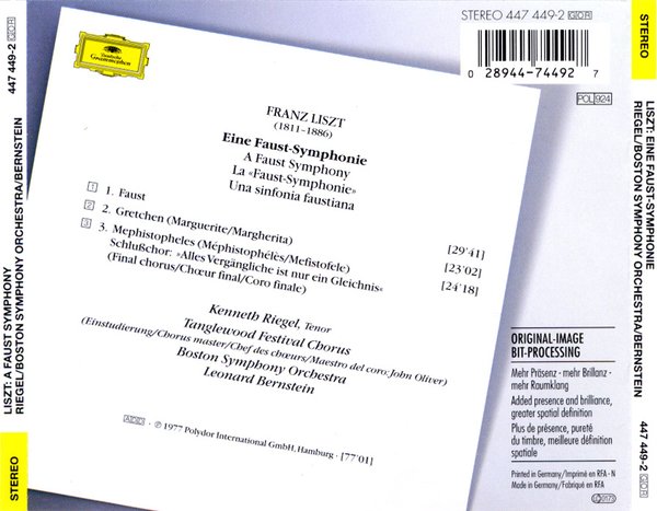 雷昂纳德·伯恩斯坦 Leonard Bernstein -李斯特:浮士德交响曲 Liszt:Faust Symphonie 传奇录音版[FLAC]