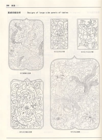 上卷 椅类  宝座  扶手椅  靠背椅  玫瑰椅  官帽椅  交椅  太师椅  圈椅  矬坐椅  长排椅  屏背椅  高背文椅 凳类  春凳  脚凳  海棠凳  文竹凳  坐墩  小条凳  方凳  方杌  扇形凳  圆凳 桌类  方桌  长桌  半桌  琴桌  书桌  供桌  条桌  炕桌  房前桌  鱼桌  大圆台 案类  画案  炕案  翘头案  平头案  卷头案  条案 几类  香几  花几  茶几  方几  圆几  炕几  长几 下卷 床榻类  架子床  罗汉床  凉床  美人榻 柜格类  衣柜  联二橱  床头柜  矮柜  柜格  书格  多宝格 其他类  屏类  台类  架类  箱类  佛龛 附录  木雕书法  构件纹样  脚样  雕花图块  构件名称 书摘与插图