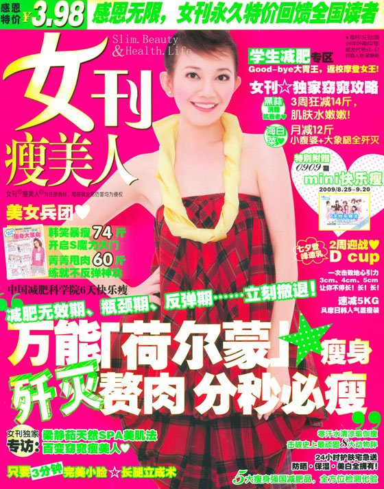 《女刊-瘦美人》是中国发行量最大的瘦身美容杂志。本刊着意打造中国最专业·专注·原创·权威的瘦身美容杂志,帮助每位女性成功减肥,塑造美丽自信!无论你是猜疑,还是一点不信,事实上《女刊瘦美人》已经被很多青春少女奉为瘦身宝典。
