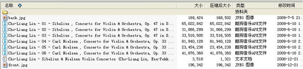 : 01 - Sibelius , Concerto for Violin & Orchestra, Op. 47 in D Minor - 1. Allegro moderato.ape 02 - Sibelius , Concerto for Violin & Orchestra, Op. 47 in D Minor - 2. Adagio di molto.ape 03 - Sibelius , Concerto for Violin & Orchestra, Op. 47 in D Minor - 3. Allegro ma non tanto.ape 04 - Carl Nielsen , Concerto for Violin & Orchestra, Op. 33 - 1. Largo.ape 05 - Carl Nielsen , Concerto for Violin & Orchestra, Op. 33 - 2. Poco adagio.ape 06 - Carl Nielsen , Concerto for Violin & Orchestra, Op. 33 - Rondo - Allegretto Scherzando.ape