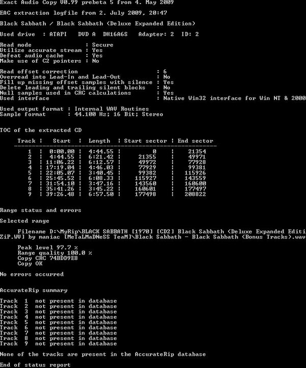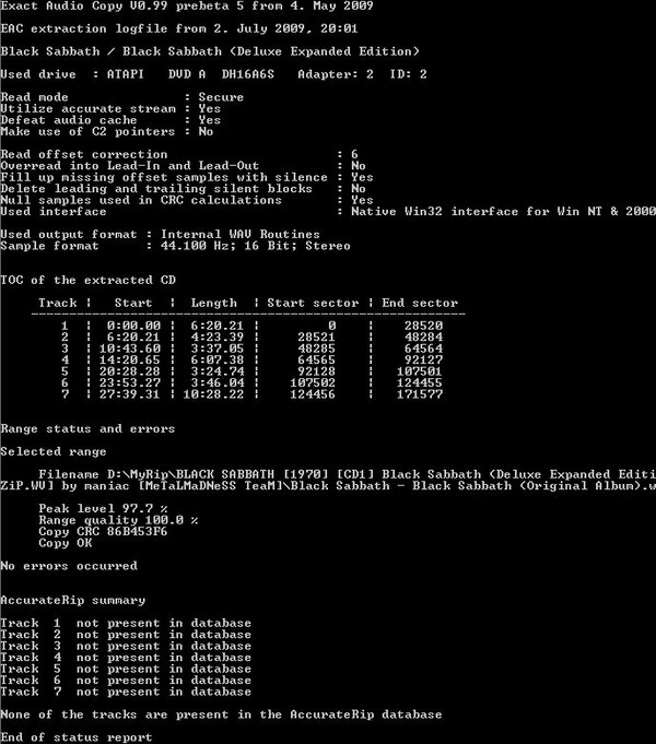 这支来自伯明翰的乐队是由贝司手GEEZER BUTLER,吉他手TONY IOMMI,鼓手BILL WARD,歌手OSBOURNE OZZY组成。1969年乐队把原名“Earth”改成了“BLACK SABBATH”他们以使用纯正音色,极度简化的音乐和魔术般的联想著称。1970年推出了第一张同名专辑《BLACK SABBATH》。他们的第二张专辑《PARANOID》中的同名专辑也取得了一次瞬间的轰动。乐队的演出结合了核战争与死亡的主题,还显示了毒品,青年反叛的厄运和毁灭与队的感染力是建立在于青年观众一对一的确定的基础上。但几乎没有电台乐于给他们播放唱片,其中最著名的就是《MASTERS OF REALITY》和《SABBATH BLOODY SABBATH》他们的巡演也几乎场场爆满。在八十年代BLACK SABBATH的人员一直在处于不断的变化中,只有IOMMO一人一直留在乐队中。到了九十年代BLACK SABBATH已渐渐的被人遗忘,但他们早期的唱片仍能给新一代的乐队和听众带来灵感。