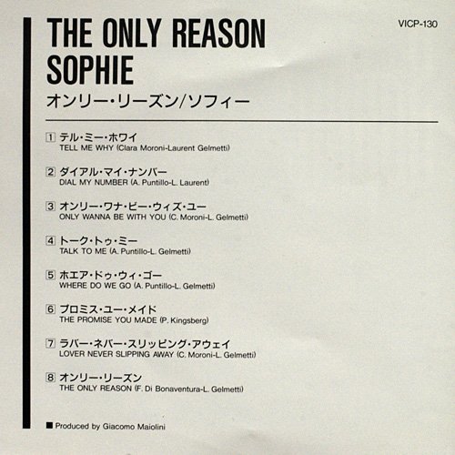 Sophie 原名 Elena Feretti. 个人资料不详. 成名於上世纪欧舞风行的八十年代. 嗓音特别. 其作品多被其它各舞曲专辑收录. 而大家熟悉的荷东也收录了单曲"My World". 本辑 The Only Reason 歌曲旋律震撼. 特献给欧舞爱好者欣赏.